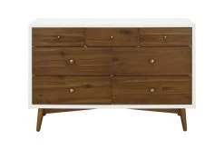Babyletto Scoot 3-Drawer Changer Dresser With Removable Changing Tray – White/Natural Walnut