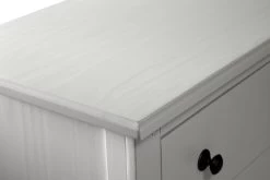 - Six spacious drawers with metal drawer glides and stop mechanisms to prevent drawers from pulling out