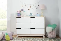 So many onesies, so little time… the babyletto Hudson 6-Drawer Double Dresser is here to help! An upgrade from our best-selling dresser, this six drawer version arrives fully assembled, ready out of the box to keep your babe’s wardrobe neat and organized. Complements the mid-century modern-inspired Hudson 3-in-1 Convertible Crib with matching angular feet. Versatile style to pair with other babyletto designs and fit in any modern bedroom.