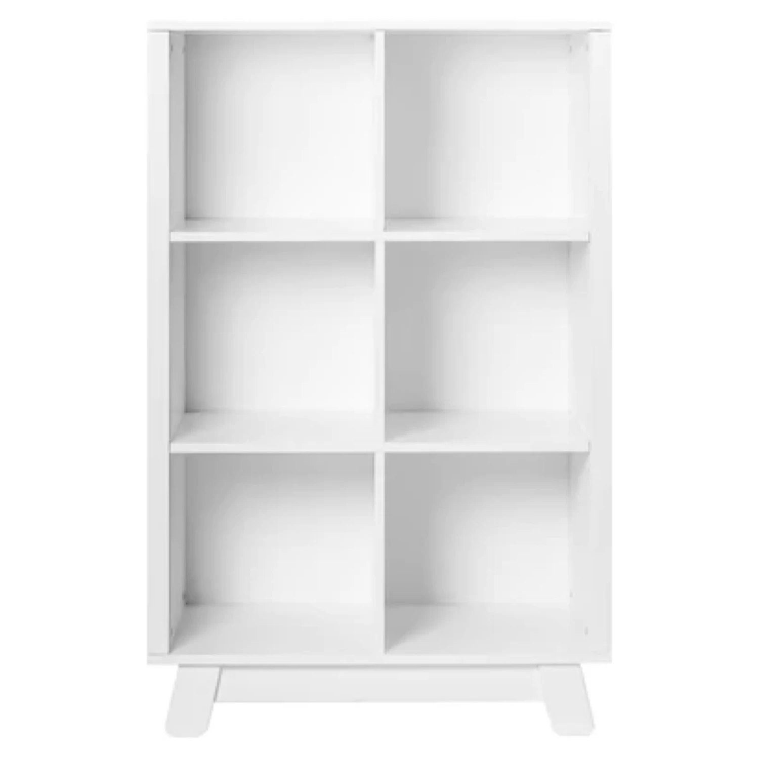 Keep your babe’s buddies, books and toys safely stored away with the Hudson Cubby Bookcase. Mirroring the mid-century style of the Hudson crib mamas know and love and made with the same eco-friendly, non-toxic materials this bookshelf features playful angular feet that makes for a modern silhouette that is cheerful and fun. The six cubby style shelves are the ideal place to display toys or books and are sized to fit standard sized storage boxes (13”x13”x15”) to keep the nursery, playroom or big kid room neat and organized. Pair it with any of our babyletto nursery and kid collections for a stylish and on-trend room.