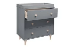 Enjoy the playful modernity of the Lolly 3 Drawer Dresser Changer! With natural curves, delicate natural feet, and an included removable changing tray, the Lolly Dresser is a perfect complement to the Lolly 3-in-1 Convertible Crib.
