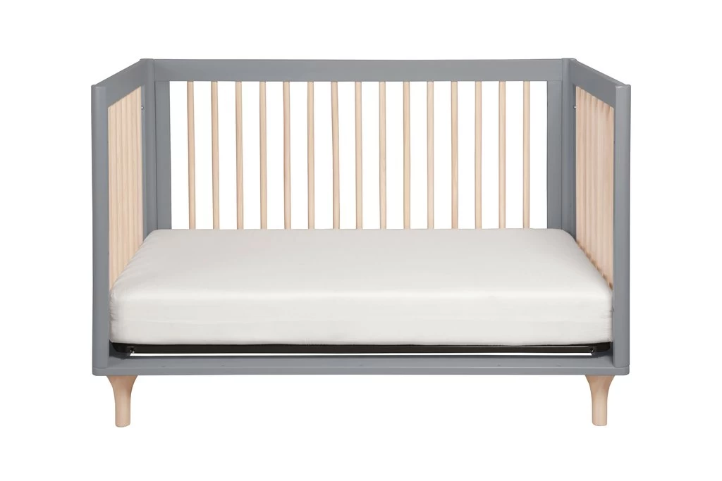 Delight in the playful joy of the Lolly 3-in-1 Convertible Crib! With natural spindles, gently curved corners, and delicate natural feet, the Lolly is a clever choice for the modern nursery. Lolly features hidden hardware construction, eco-friendly materials and finishes, and includes a toddler rail for later conversion.