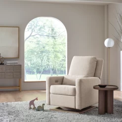 Babyletto Sigi Electronic Recliner And Glider – Performance Beach Eco-Weave With Light Wood Base