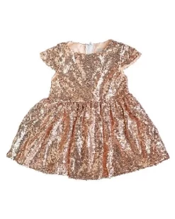 This dress will literally take your breath away! Fully lined on the inside for comfort, this dress is completely covered in shimmering gold sequins! Perfect for photos, birthdays, parties and special occasions, or just being fabulous, your little princess is sure to make her mark!
