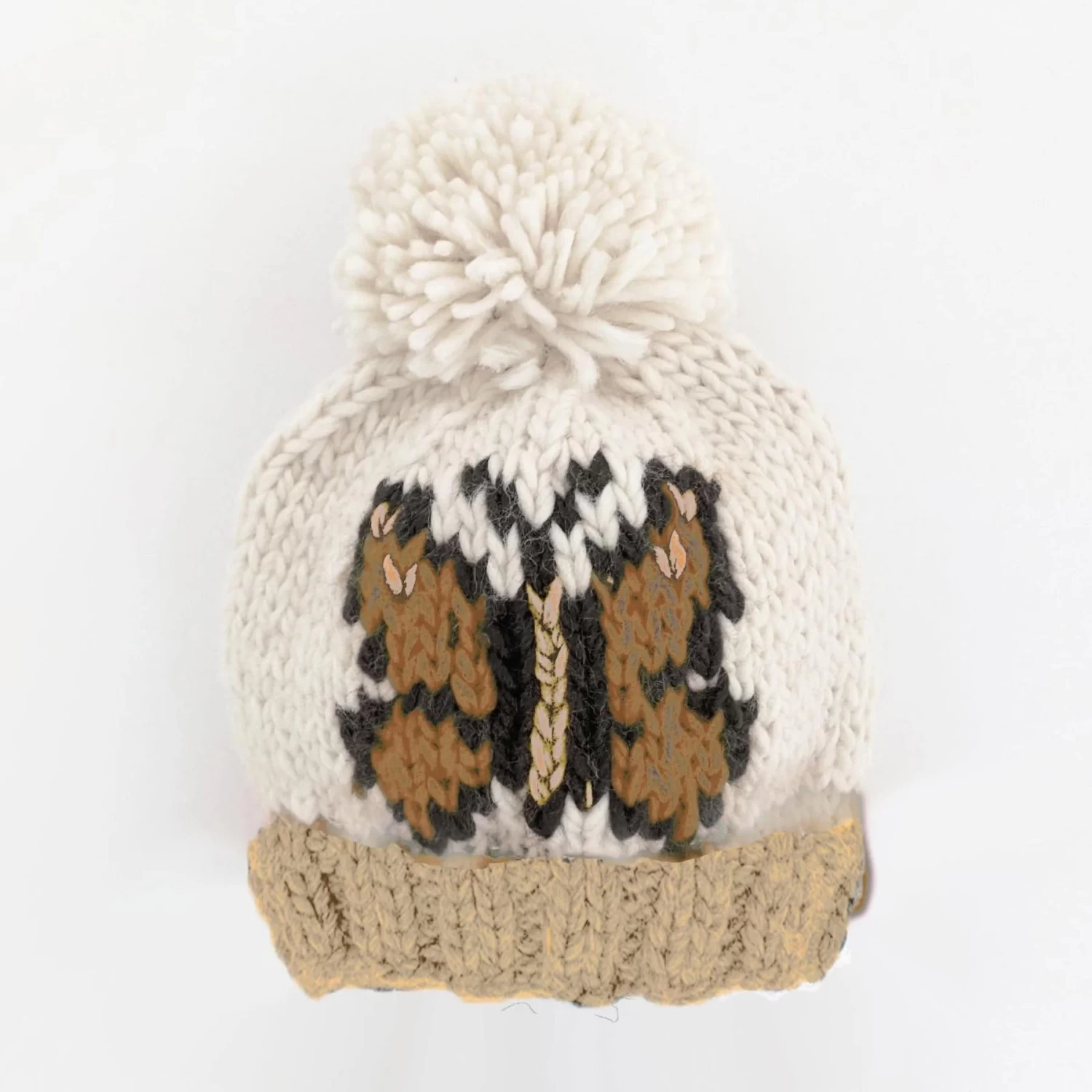 This is such a pretty butterfly hat! Hand knit in Natural colored yarn, it has a pecan brown butterfly with Latte cuff. It’s trimmed with a matching natural yarn pom pom. Hand knit in cozy, thick acrylic yarn, this hat perfect for cooler weather and makes a great gift!