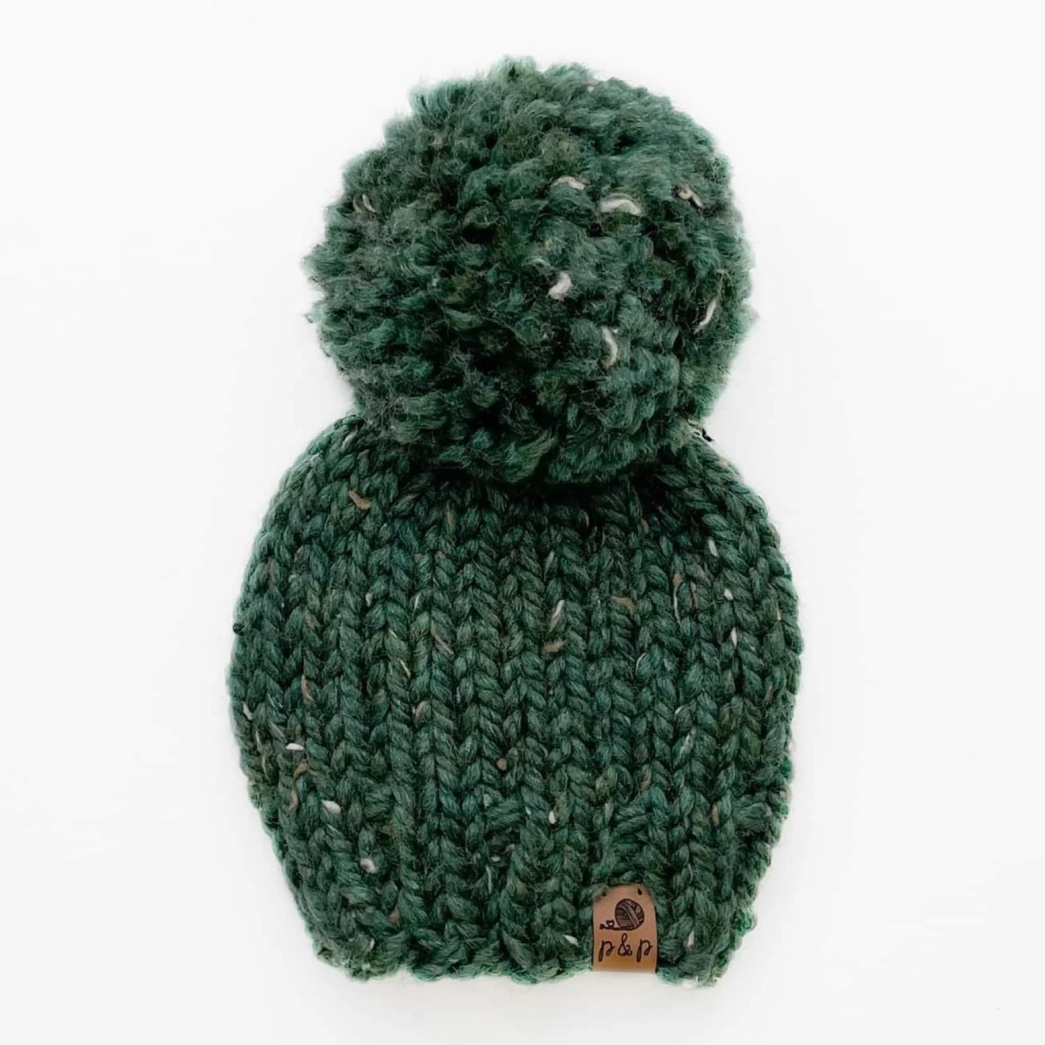 These handmade knit hats are made with a thick wool/acrylic blend.