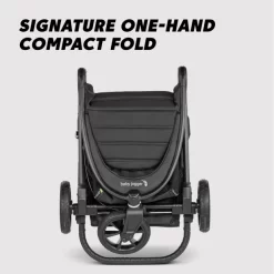 - Baby Jogger’s signature one-hand fold with auto-lock ensures easy transportation and storage