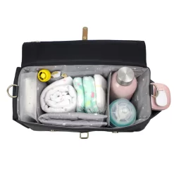 Stay organized while on the go! Itzy Ritzy’s stroller caddy is as practical as it is sleek. It features adjustable straps that can accommodate almost any size of stroller handle, and they allow the caddy to be repositioned and moved whenever you choose. The exterior of the caddy features a zippered front pocket that can store phones, keys and other parent essentials while the interior of the caddy includes two built-in pockets to hold bottles along with a roomy middle pocket. The stroller caddy easily wipes clean, making it the perfect addition to any stroller!