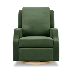 Crewe Recliner And Swivel Glider – Forest Green Velvet With Light Wood Base