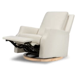 The Crewe Recliner blends form and function with its crisp, contemporary design and comfortable seat. Its smooth, back-and-forth gliding motion helps you rock your baby to sleep with ease, while the plush back cushion, hidden recline mechanism, and convenient swivel create an inviting repose for both you and your baby.