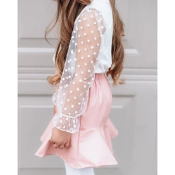 Your new favorite leo is HERE! With sheer dot sleeves and tailored ruffles at the wrist, the Destinee is the go-to spring top! Pair it with a pink skirt or some of our bells to really make a statement this season!