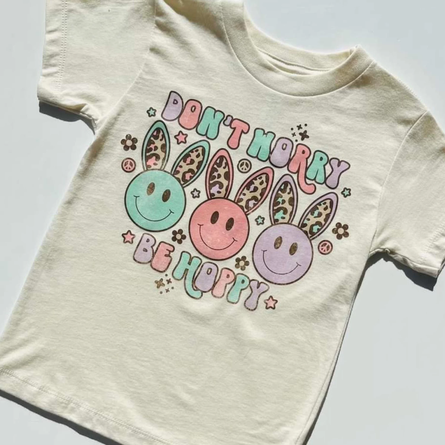 Short sleeved top with colorful words and bunnies. So cute for the Spring season!