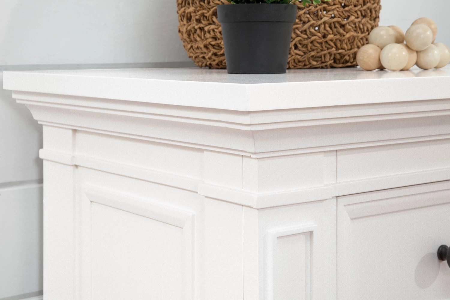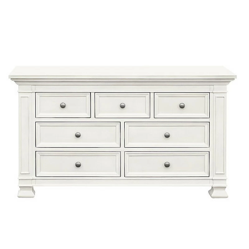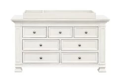 The Classic Double-Wide Dresser is designed to accompany both the Wakefield and Tillen 4-in-1 Cribs—mirroring their recessed details, molding, and luxurious footprint. Four spacious drawers on bottom provide ample storage space, while three top drawers provide added organization for baby’s necessities. With timeless details and solid construction, the majestic Classic dresser can transition beyond the baby years into any room in your home