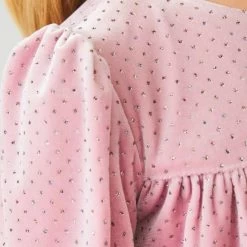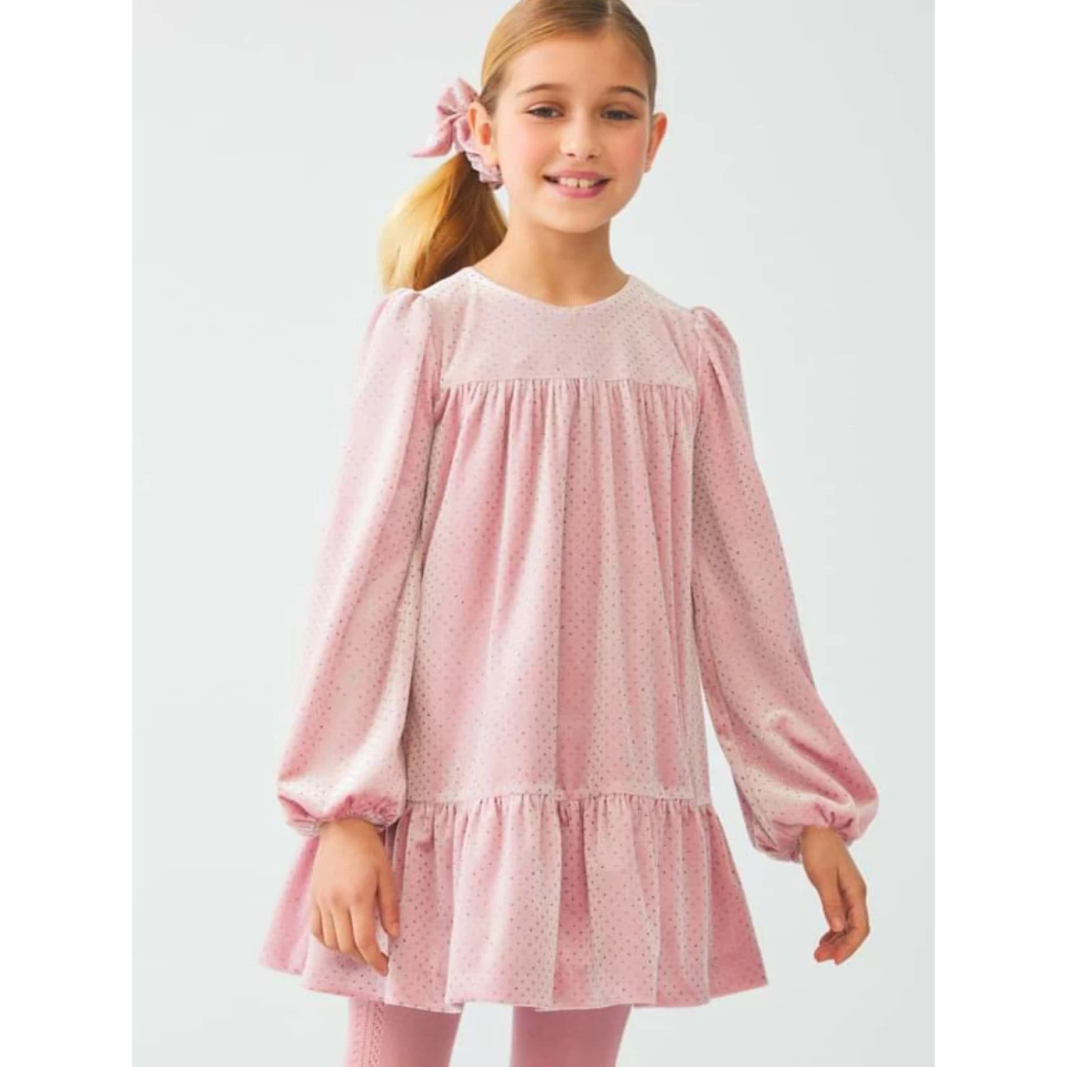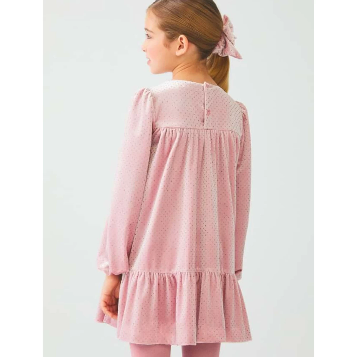 Flowing velvet dress with glitter, long sleeves and elastic cuffs.