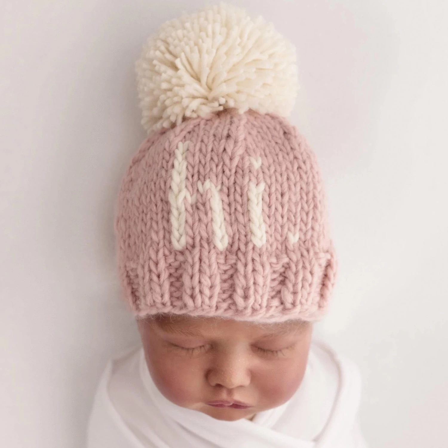 What a cute way to greet the world! This beanie is hand knit in cozy Natural hued yarn with the word ‘hi.’ in Pecan colored yarn. Topped with a Pecan yarn pom pom, this looks great with everything and is a fun gender-neutral baby gift.