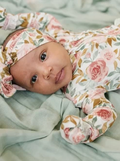 This Floral Bamboo knotted baby gown makes the perfect going home outfit or gift! Made from naturally soft and lightweight bamboo viscose material to keep your baby comfortable. Featuring fold over cuffs to keep baby from scratching and to keep their little hands warm. The knotted bottom can grow with your child and makes diaper changing a breeze!