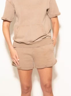 Made with a special material wash that resembles a day spent in the sand and salty shores; these shorts are designed with rolled cuffs, front pockets, elastic waist and a relaxed gym style fit for non-restricting wear. Pair with our matching Acid Wash Short Sleeve Hoodie or Favorite Tee to complete the look.Â
