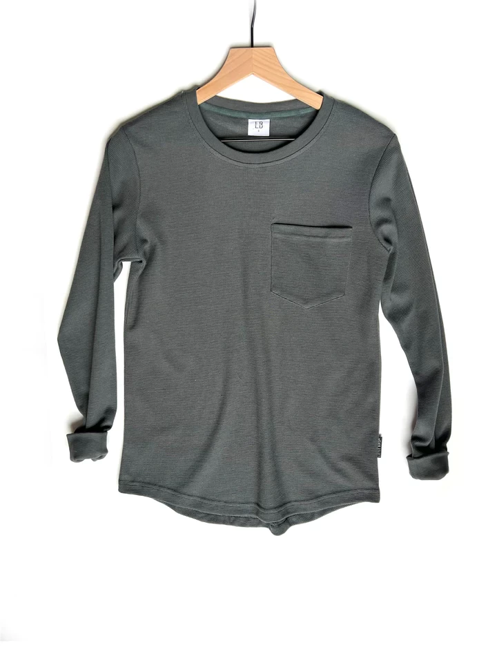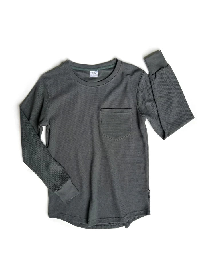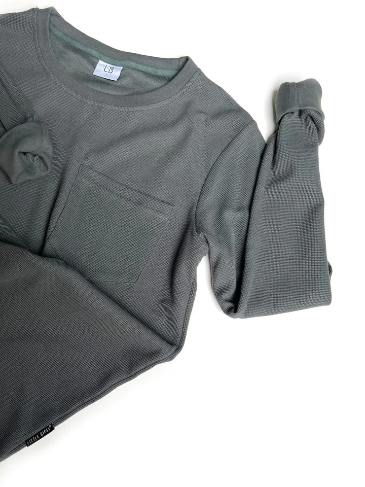 Of course we have the new Waffle Tops in a classic black color! Simple yet sophisticated as ever, take it easy in this soft top. Be sure to look a the matching set for the little ones!