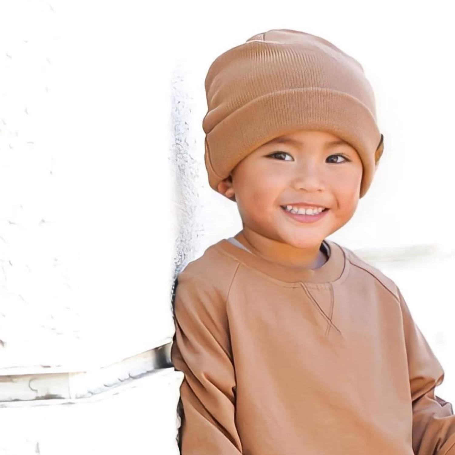 Our favorite knit beanies are back and better than ever. This soft and comfy beanie will keep your little ones warm and ready for outdoor play. Now available in adult size as well!