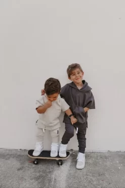 This is a comfortable short sleeve hoodie, perfect for play dates and more!