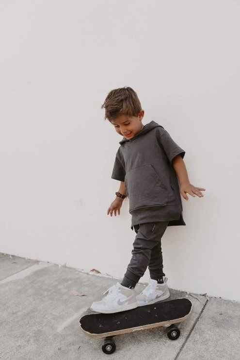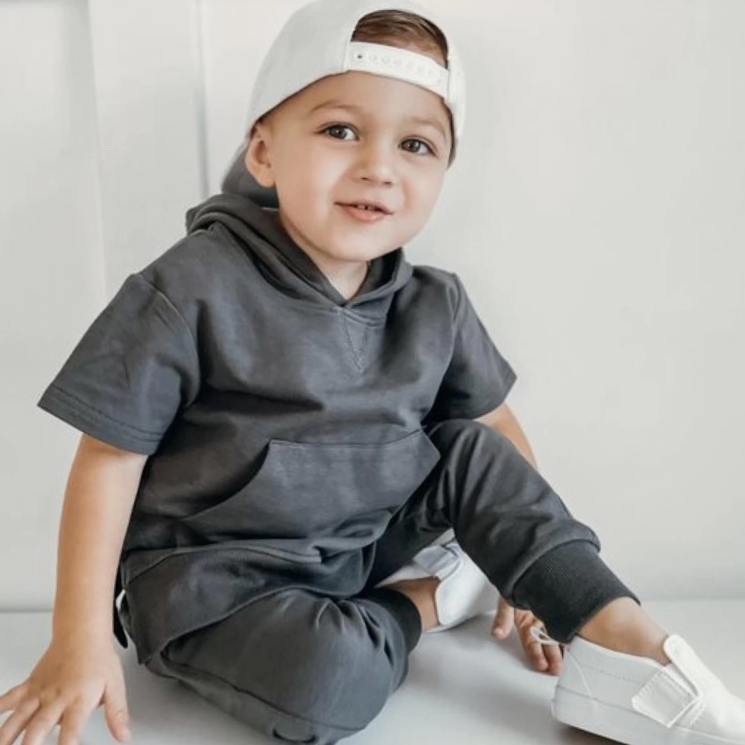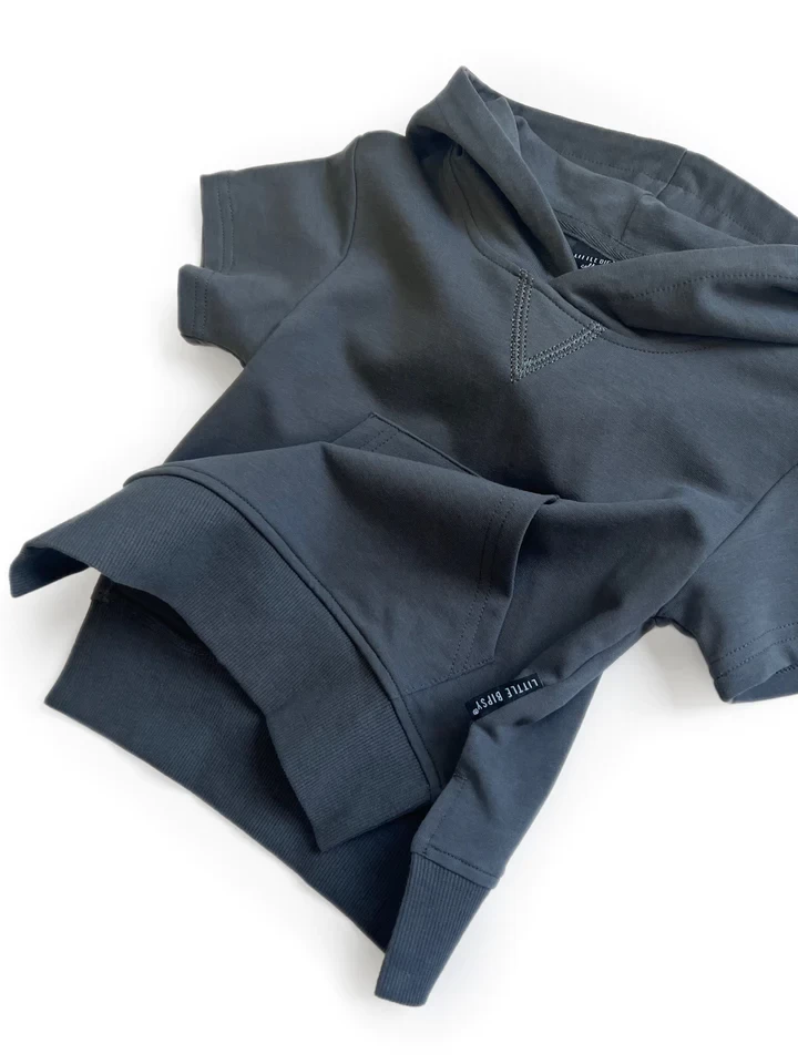 This is a comfortable short sleeve hoodie, perfect for play dates and more!