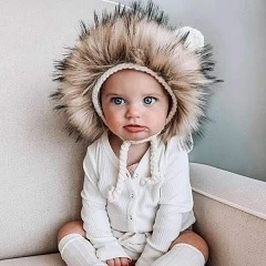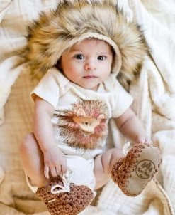 A bonnet to match your Little’s inner wild! Our Lennon Lion Bonnet has a faux fur trim, round ears, and a tie closure. You will love how sweet your little one looks in this bonnet.Â