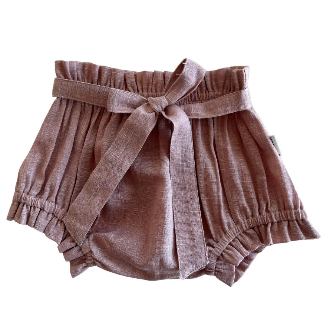 Linen bloomers with functional tie, can complete a look or pair under a dress.Â