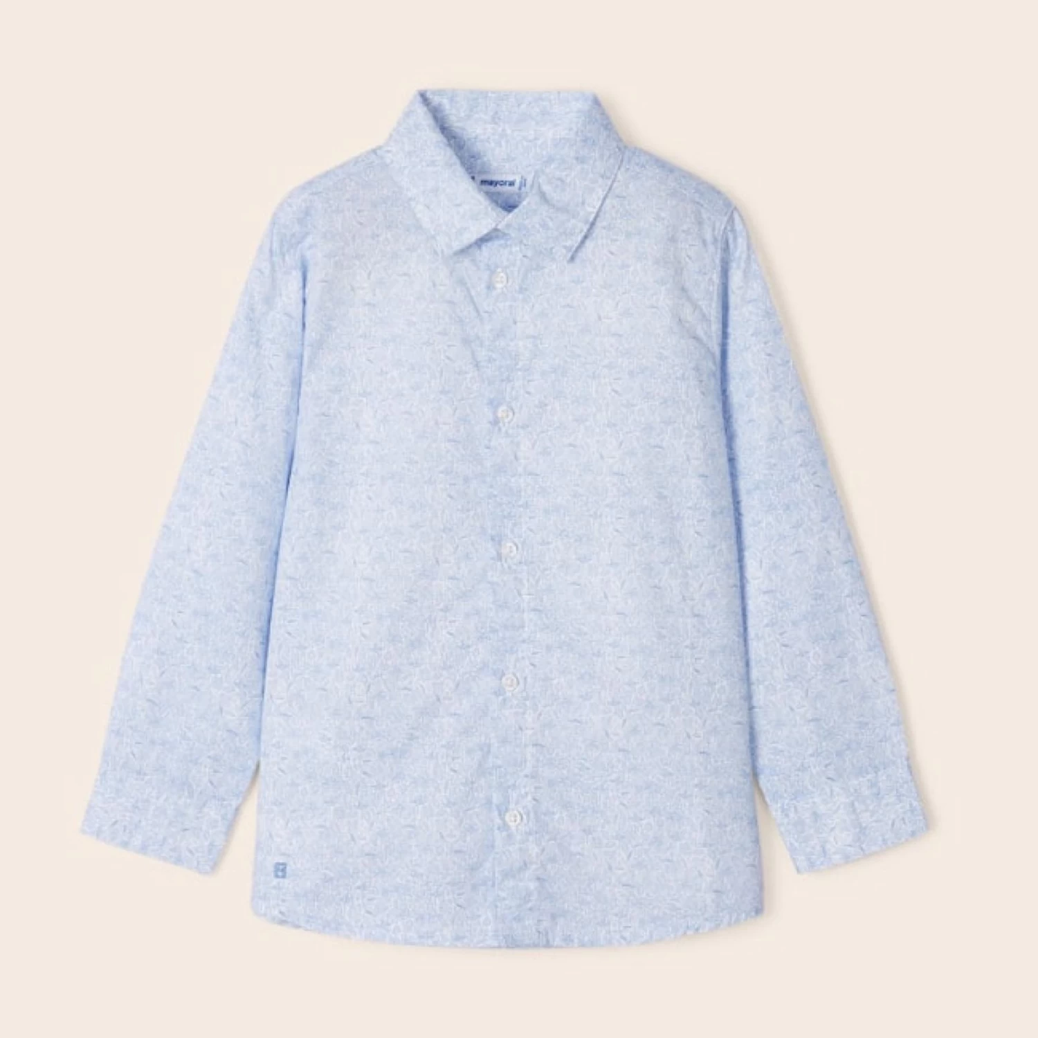 Mayoral Leaf Print Long Sleeve Cotton Shirt