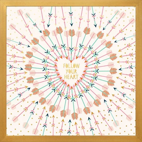 Cute, trendy, fun and inspiring wall art by Janine Bethan. This wall art has gold metallic leaf accents that are hand applied. This canvas is imported and framed in wood with a gold metallic painted finish. Some irregularities are present and intended as part of the design.