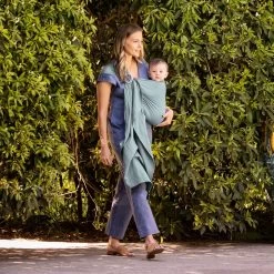 With it’s elegant, intuitive design, the Ring Sling offers a fashionable, functional baby carrier option for all parents and caregivers. Crafted from a high-quality, woven cotton fabric, the sling provides a more approachable, easy-to-wear alternative to the classic wrap design. It also offers both front and hip-carrying options, allowing the wearer to change positions and maintain comfort as baby grows. MOBY Ring Sling: the perfect combination of support, simplicity, and style. Adjusts to grow with baby, newborn to toddler. Offers front and hip carrying options. Soft, breathable woven cotton fabric and lightweight rings. Comfortable to wear for extended periods of time. One size fits all. Machine washable Care and cleaning: Machine wash cold, gentle or delicate cycle, hang dry, or use the lowest dryer setting.