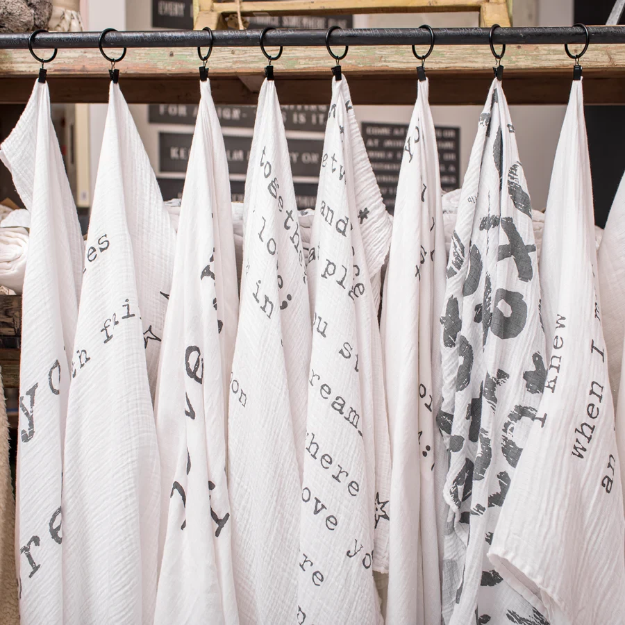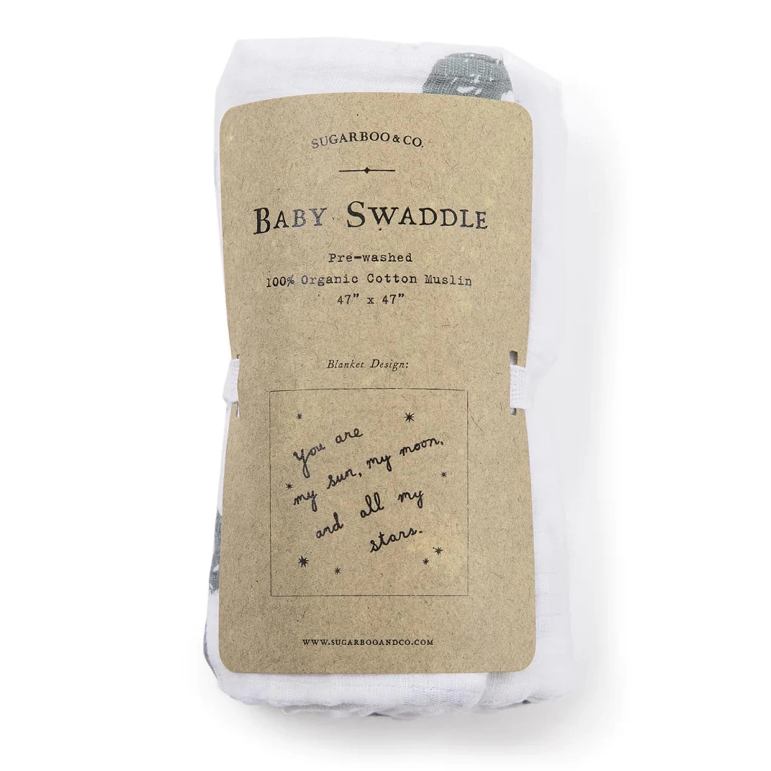 Get the My Sun, My Moon Swaddle Blanket for your little ones to cuddle up into. This swaddle makes a great baby shower gift as well!