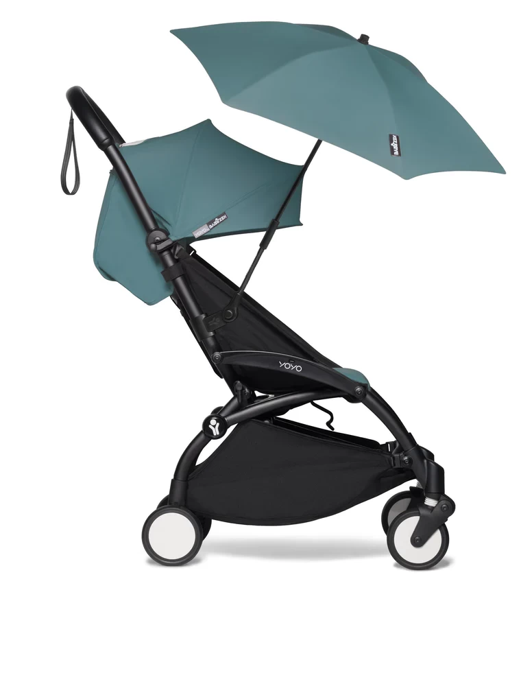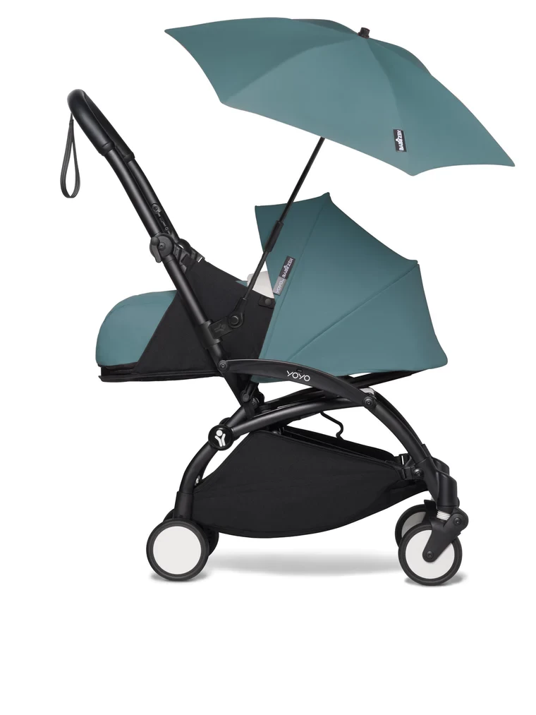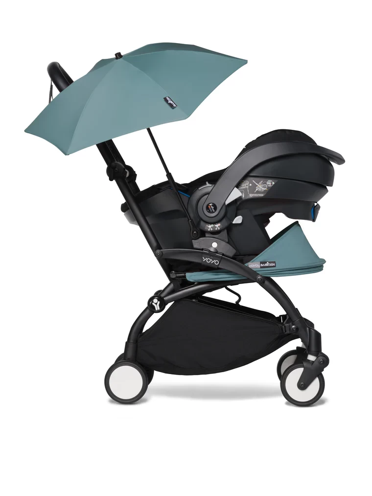 The parasol adapts to all versions of YOYO (newborn pack, bassinet, and 6+ pack) and can also clip onto the car seat.