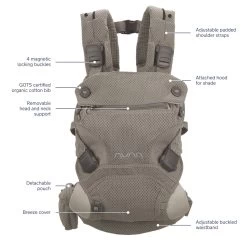 The CUDL clik features breathable mesh fabric and padded shoulder and waist straps and is designed to make babywearing cool and comfy for both parent and baby. The buckled waistband clicks together in a snap and is adjustable for just the right fit. It’s accented with a removable wristlet pouch for on-the-go essentials, so just like that you are ready for the day’s adventures.