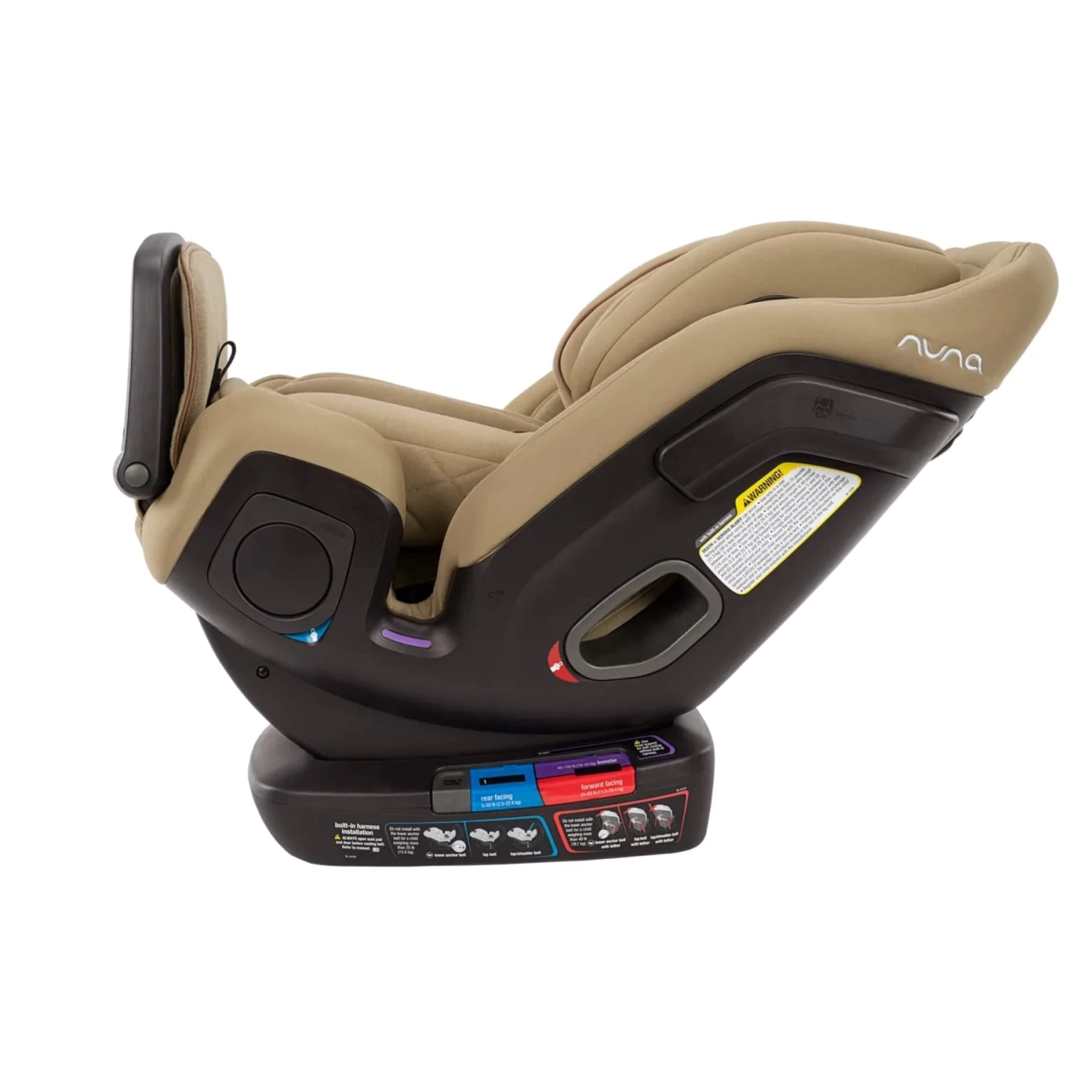 This all-in-one car seat cleverly converts from rear- to forward-facing to booster mode and is usable from 5 to 120 lb. With an adjustable anti-rebound panel and leg-rest combination, it provides a first chance at first class.
