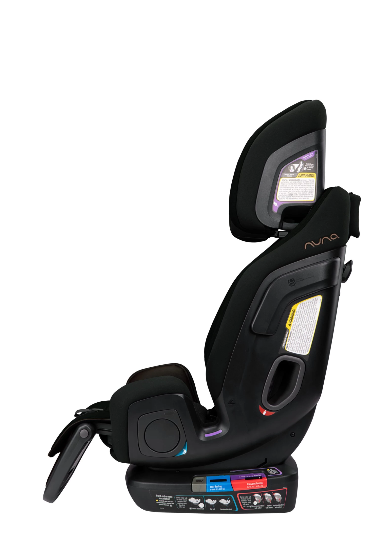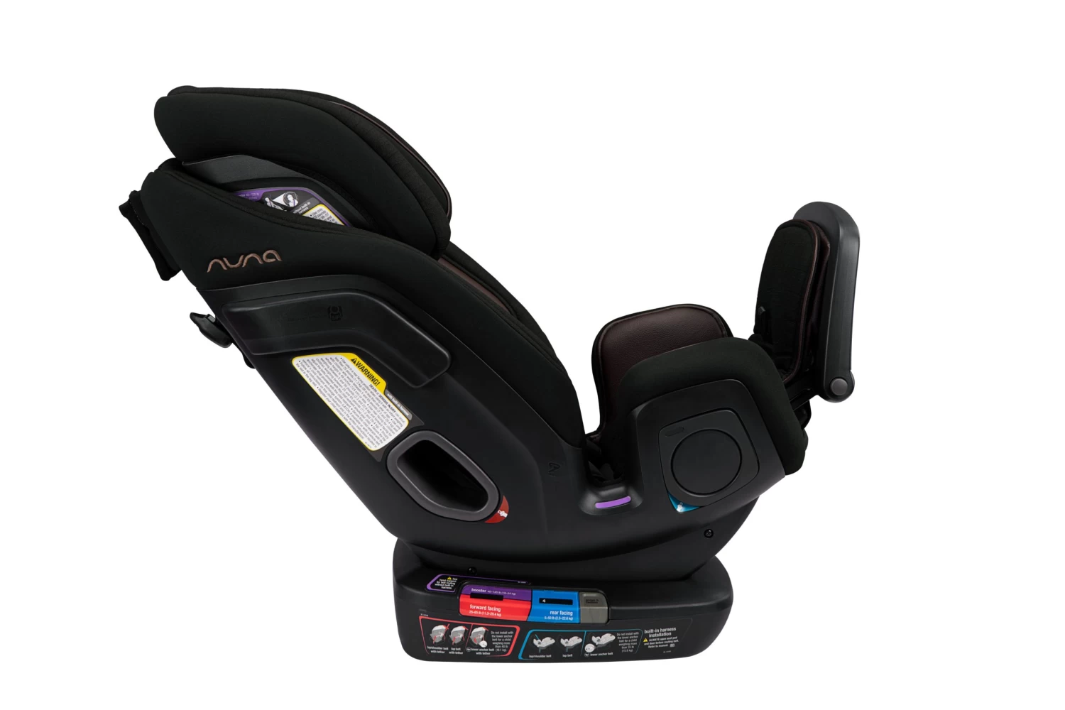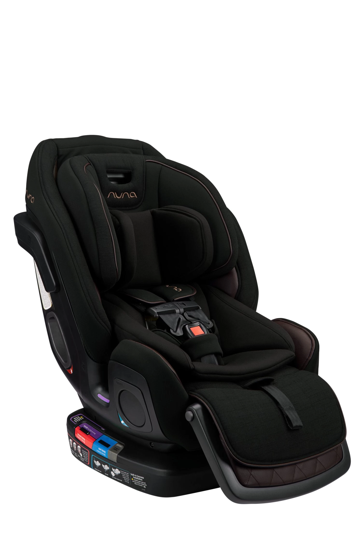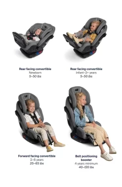 This all-in-one car seat cleverly converts from rear- to forward-facing to booster mode and is usable from 5 to 120 lb. With an adjustable anti-rebound panel and leg-rest combination, it provides a first chance at first class.