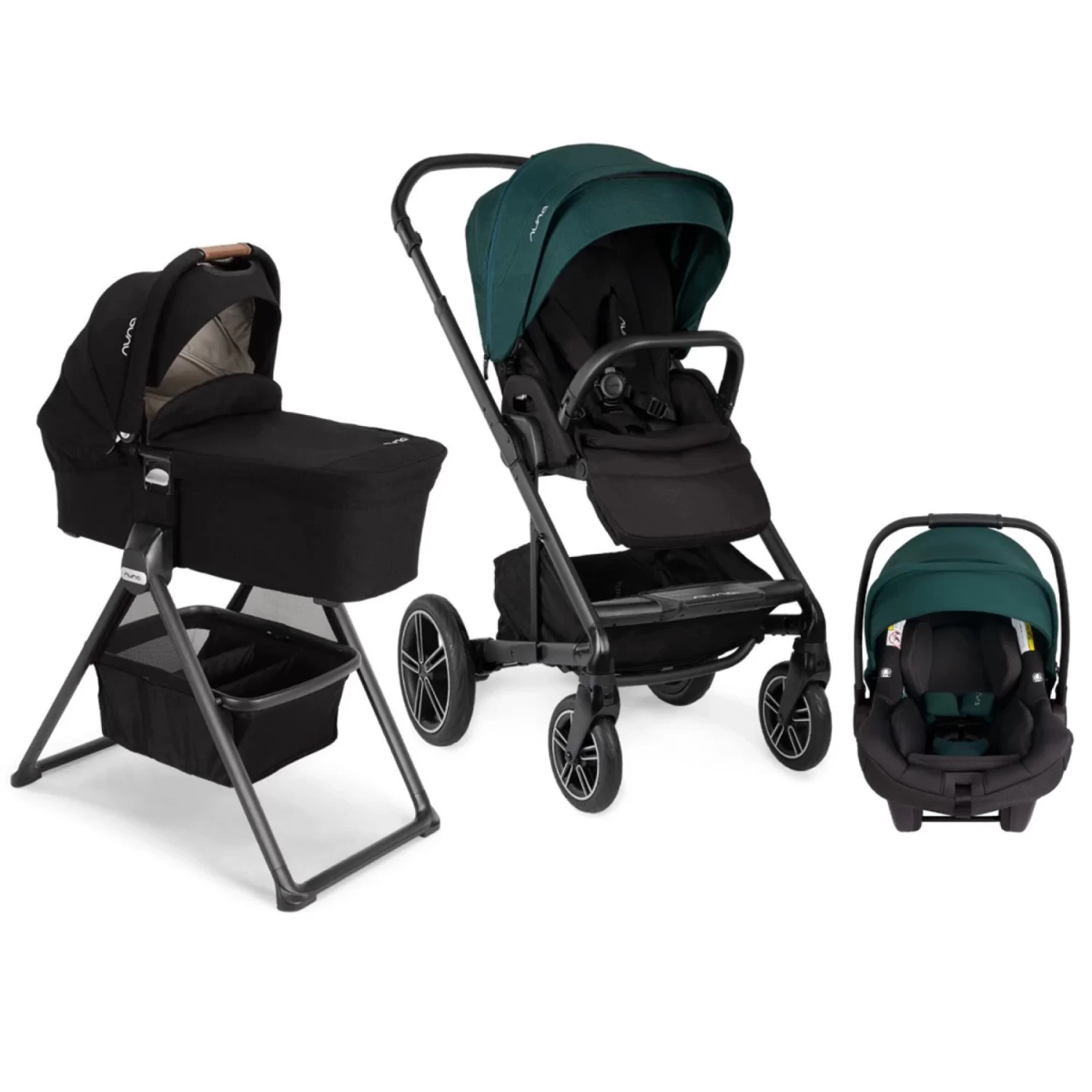 This bundle includes the Nuna MIXX Next stroller, MIXX series bassinet, MIXX bassinet stand, PIPA Lite RX infant car seat with RELX base and ring car seat adapter.