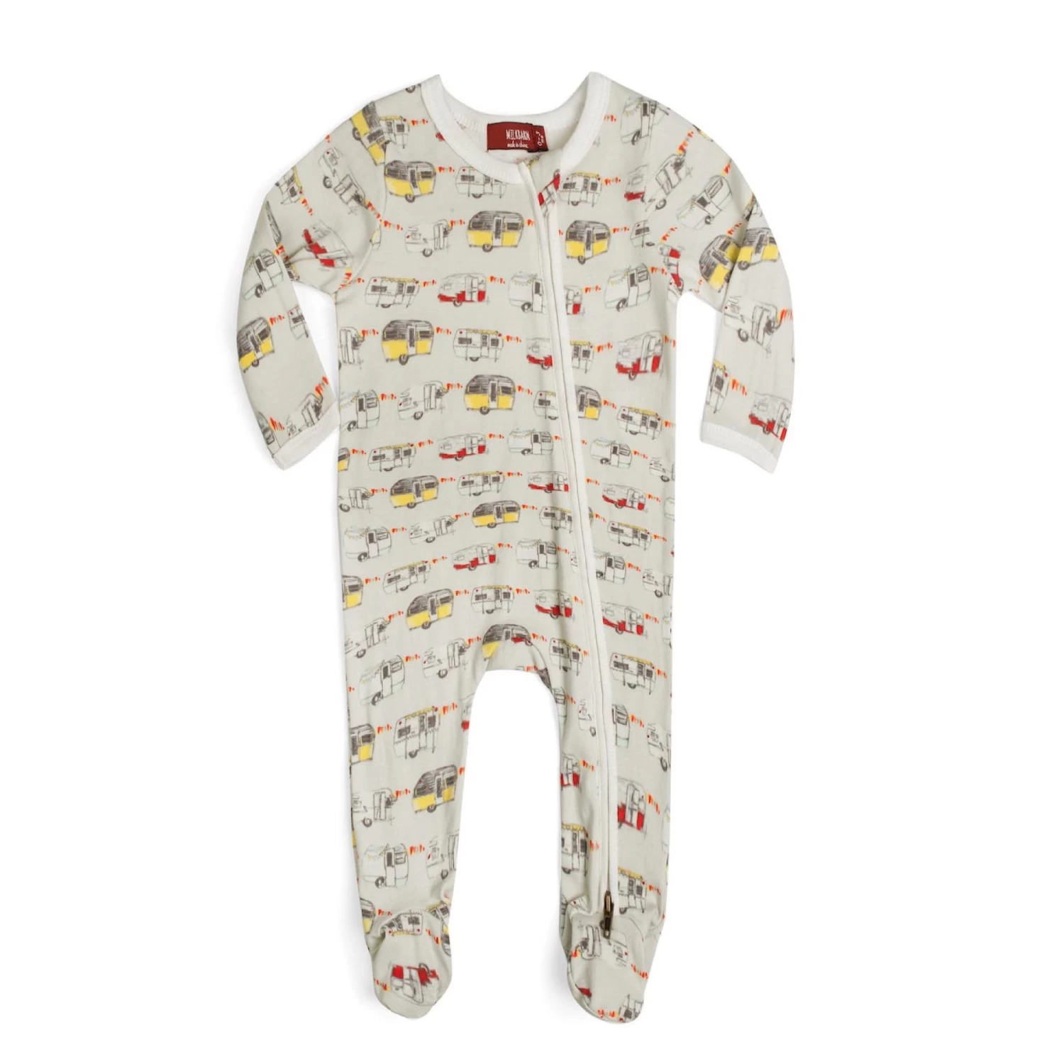 Whether zipping from the top-down, bottom-up, or somewhere in between, this makes changing and dressing just a wee bit easier with our newborn and baby Vintage Trailers Organic Cotton Zipper Footed Romper. With dual, two-way zippers, a closed foot detail, and an asymmetrical seam, this timeless classic blend design with functionality while wrapping our little ones in gentle comfort.