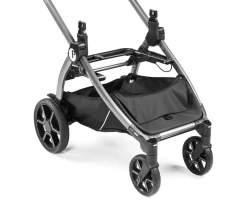 The YPSI measures just 20 inches wide, perfect for adventures where space is at a premium. The streamlined design of the chassis makes maneuvering through crowds easier and more convenient. The telescoping handle accommodates users of different heights and the hand-sewn eco-leather bar adds a touch of elegance. The wheels have a suspension system and 12 ball bearings, which means they are 30% easier to push and can take on different surfaces. The YPSI chassis is travel-system compatible with the Primo Viaggio 4-35 Nido Car Seat. The seat is detachable, reversible and can be folded right on the chassis.