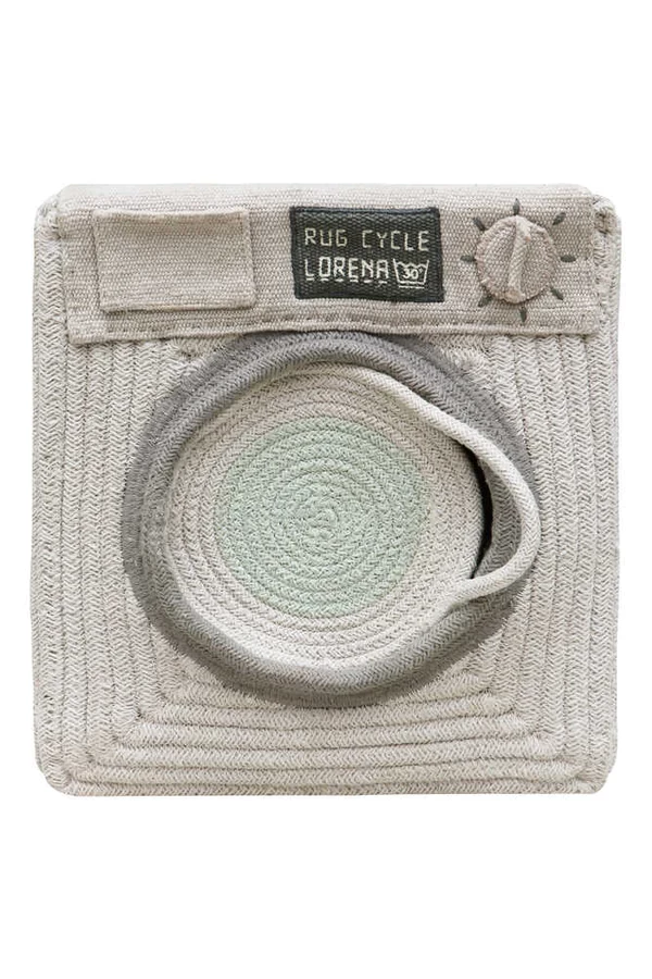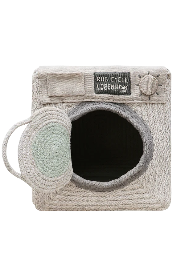 This textile toy basket washing machine is Lorena’s dream come true after more than two decades of making washable rugs. Little copycats can imitate Mom & Dad and toss the mini RugCycled rug in the machine for a quick Rug-Cycle spin topped with some pretend detergent! This all-in-one storage basket and textile toy even features a swinging door, a turning switch, and a soap dispenser. The perfect set to stimulate infants’ symbolic playing!