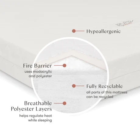 Foster healthy sleep for your babe with a Pure Core Midi Crib Mattress with HYBRID waterproof quilted cover. Combining two covers into one, the Hybrid cover protects your crib mattress with a non-vinyl waterproof backing and features a soft cotton face for baby’s comfort. For your peace of mind and babe’s safety, all Babyletto mattresses are GREENGUARD Gold Certified, hypoallergenic, and free from chemical flame retardants.