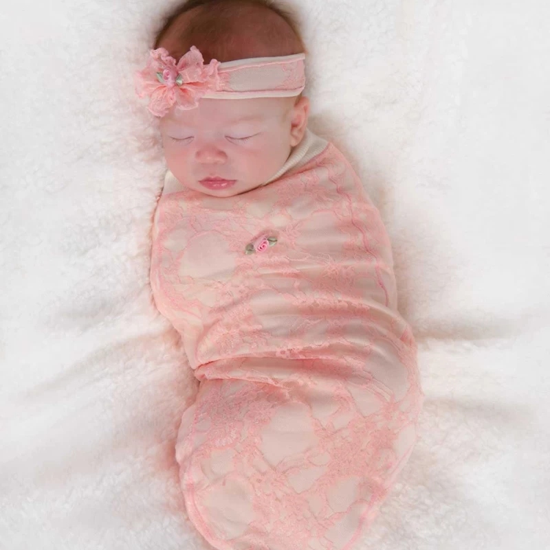 Brilliant swaddling concept in gorgeous lace lined in soft stretchy cotton knit. Simply roll up over baby stretchy cotton that hugs. Your little darling remains totally cozy while looking totally fabulous.