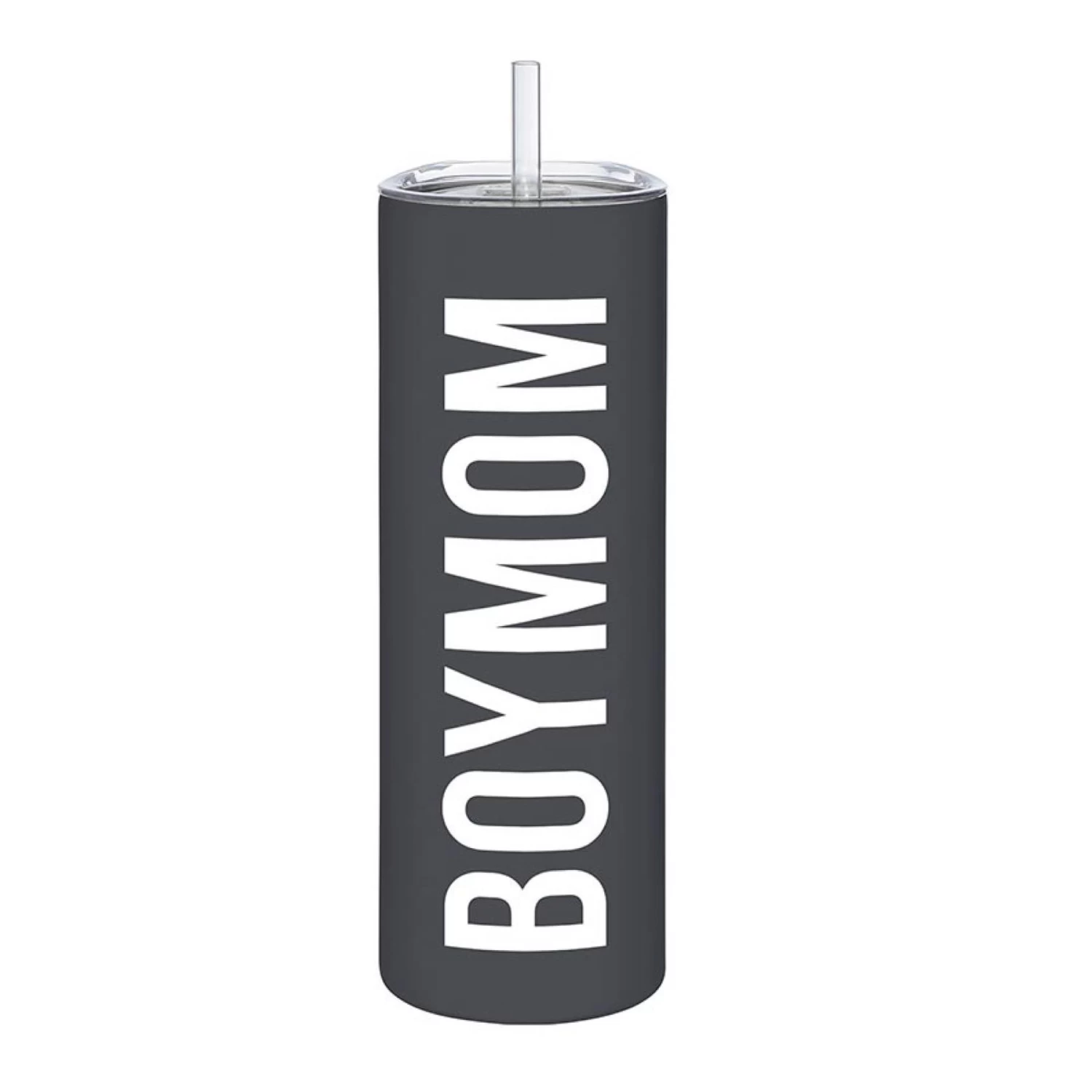 Perfect for Mom-on-the-go! Stainless steel, BPA free plastic tumbler with a press on lid and includes a straw.