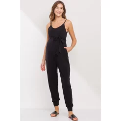 Sleeveless Belted Maternity Jumpsuit with Adjustable Straps