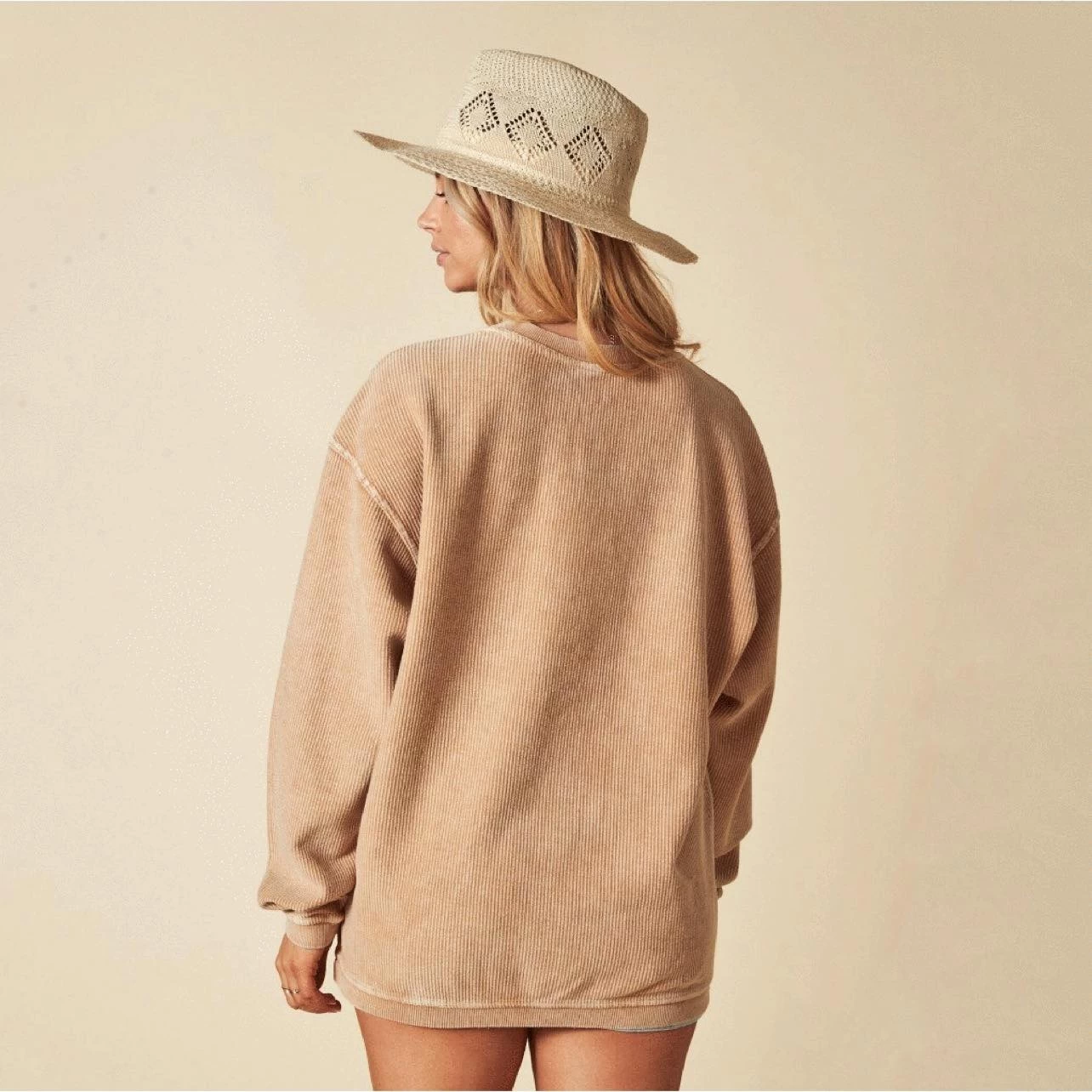 This Small Town USA Vintage Pullover is an oversized sweatshirt with a super soft, vintage wash corded fabric. It is a Cute, warm look for evening strolls.