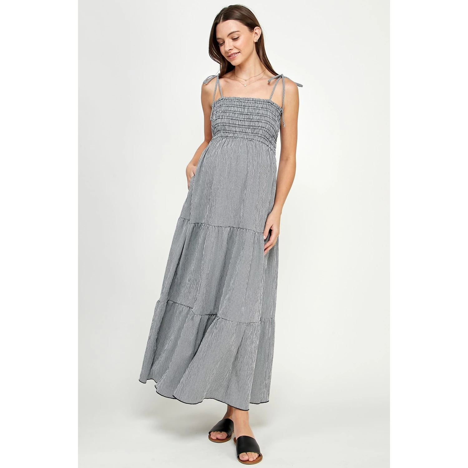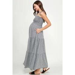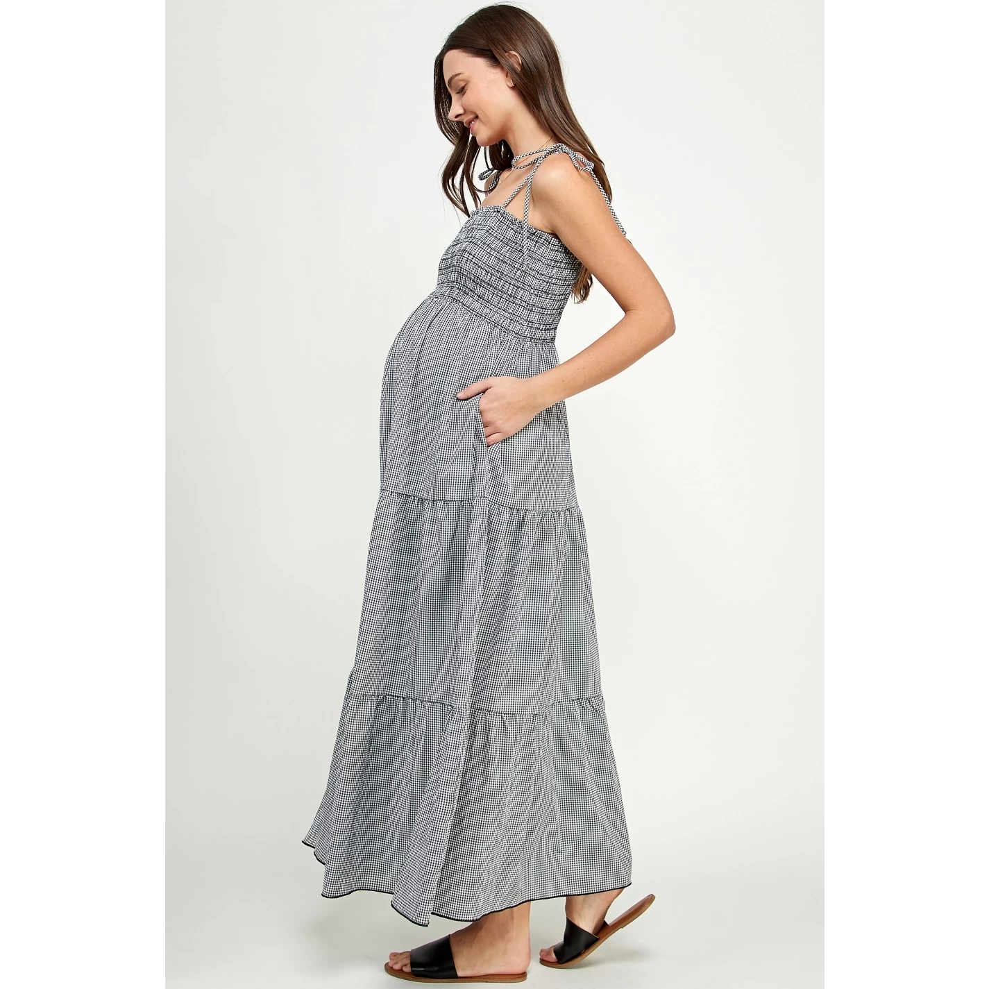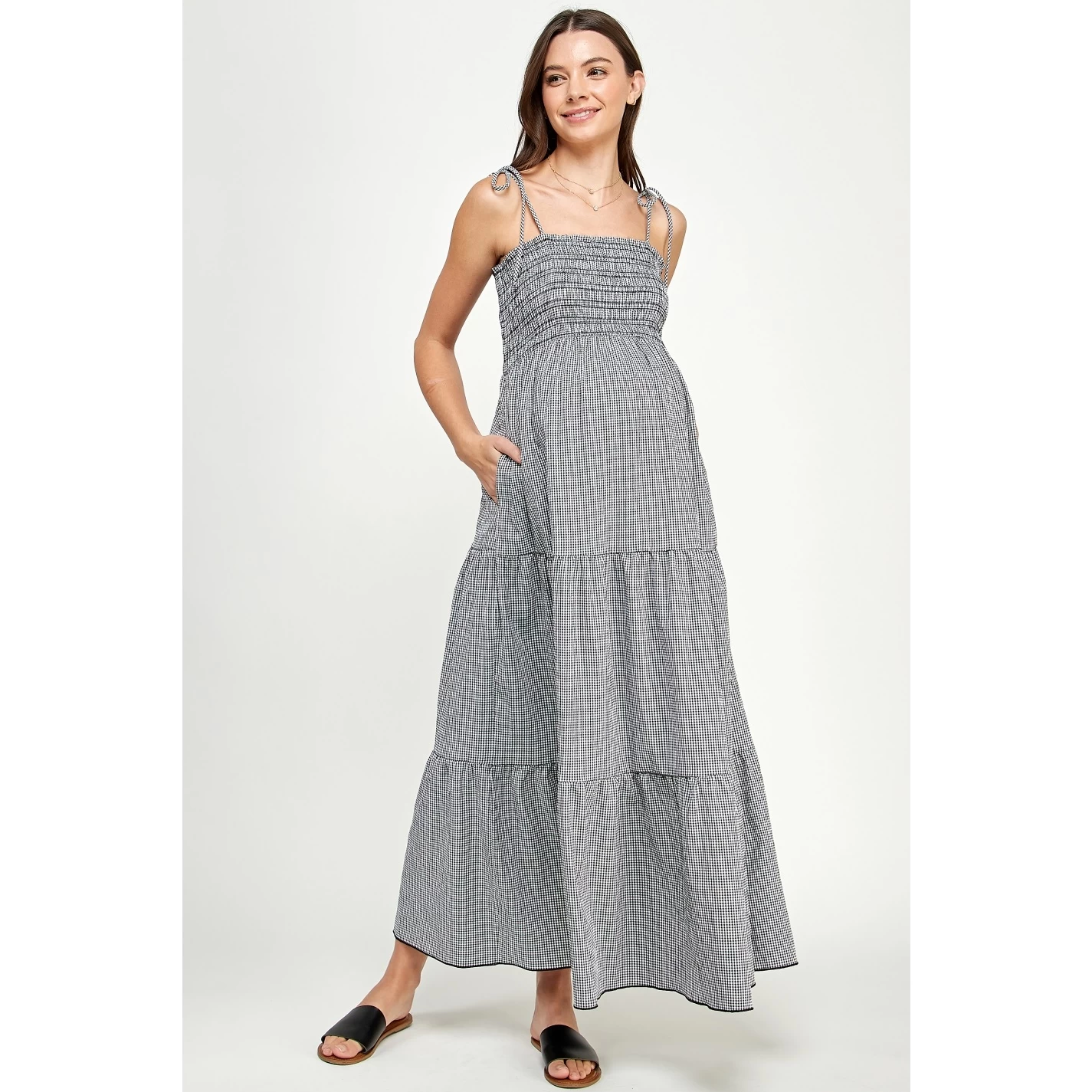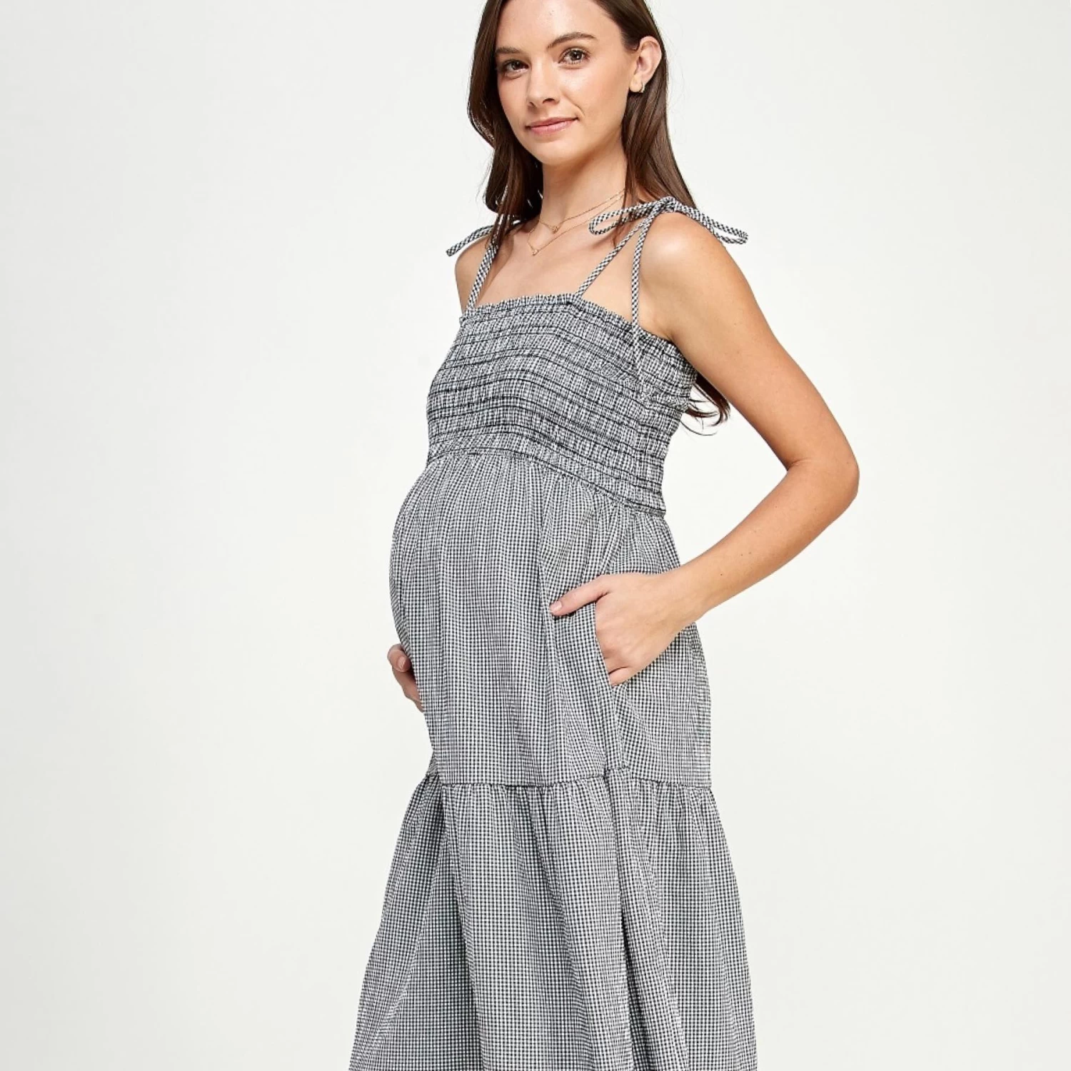 Smocking Top with Adjustable Tie Strap Maternity Dress