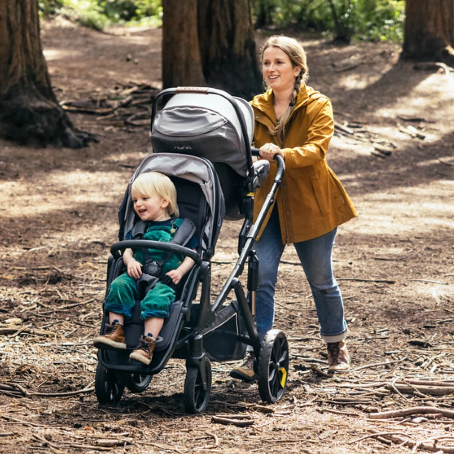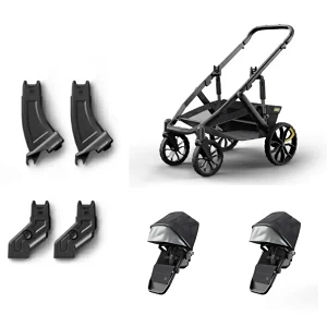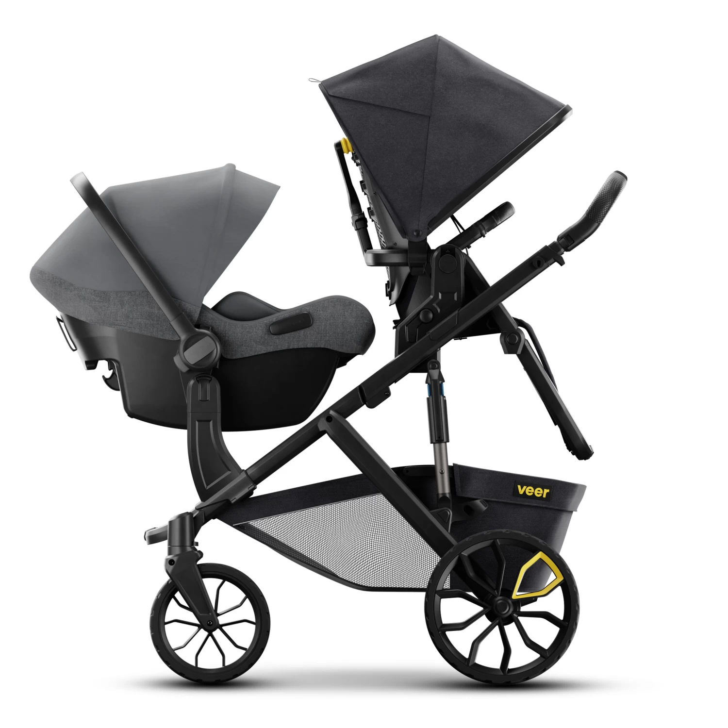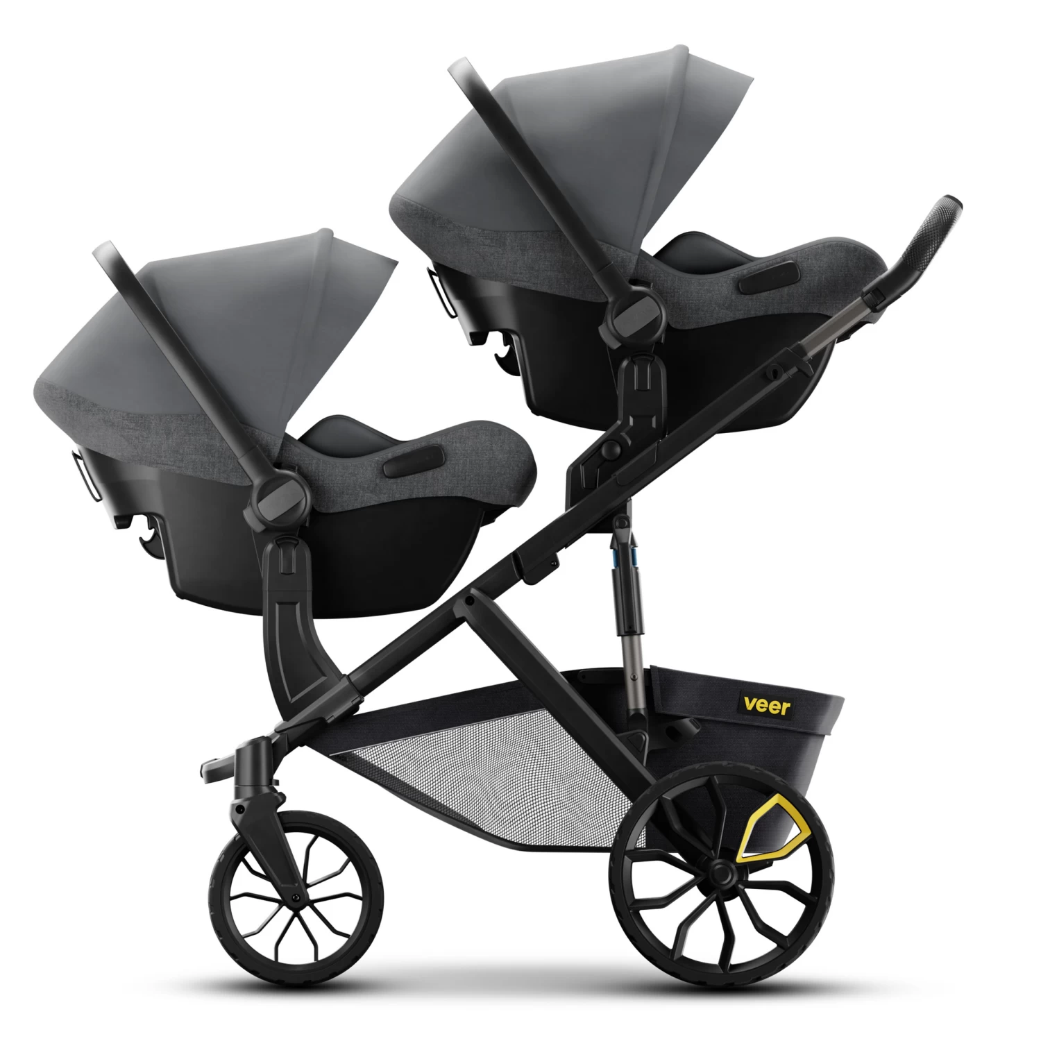 From cityscapes to landscapes, Veer’s double stroller makes wandering fun, easy, and rewarding. Comes with two switchback seats, one stroller frame and one second seat conversion kit and you can add on a infant car seats or a bassinet. With the adjustable suspension, you’ll get there in cushy comfort and style. Roam all terrains and don’t skip a beat!
