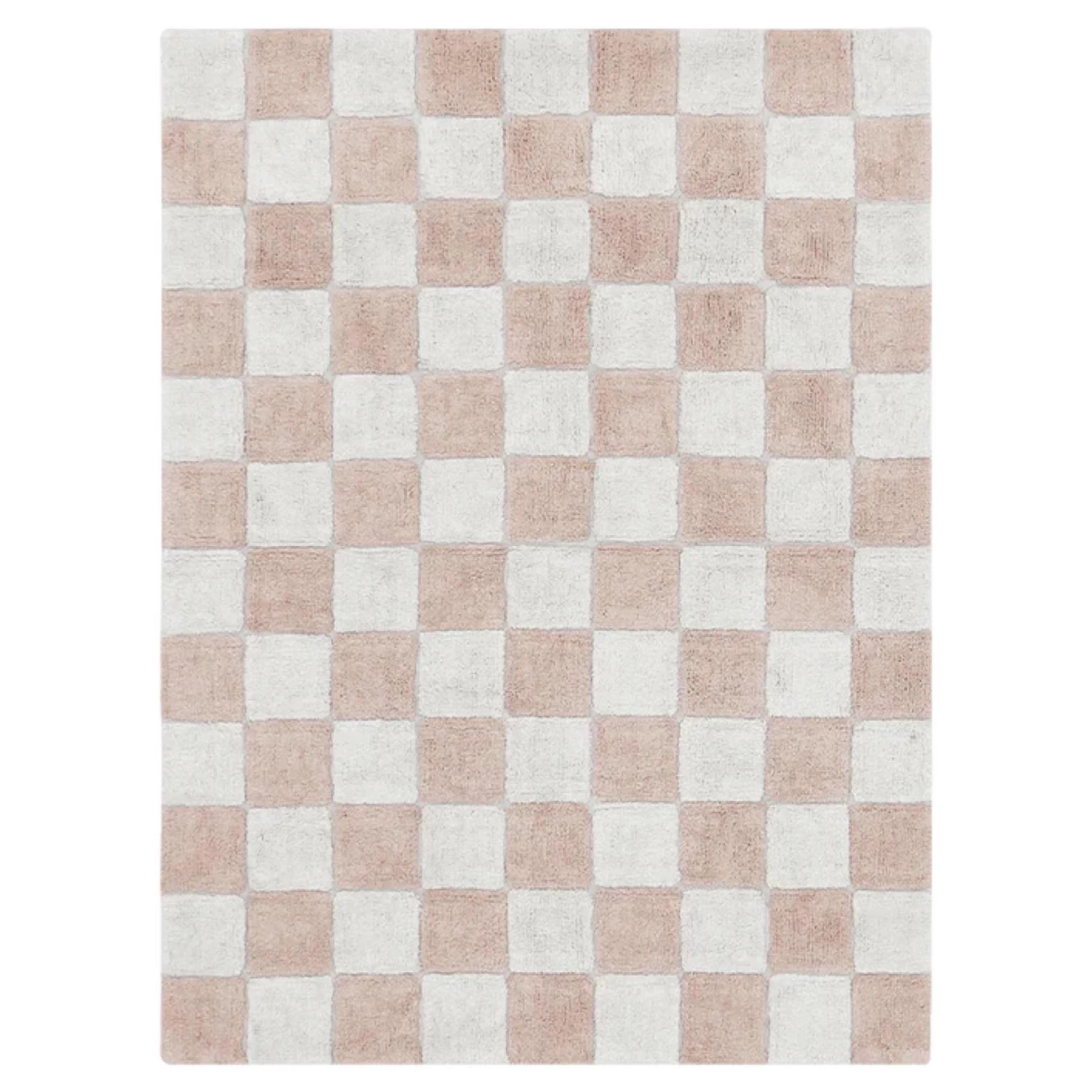 For the love of tiles! This design depicts the traditional checkerboard kitchen tile pattern on a rug. Its contrasting squares in dark gray and natural add a bold statement to any room decor. Kitchen tiles never felt so soft to tread!