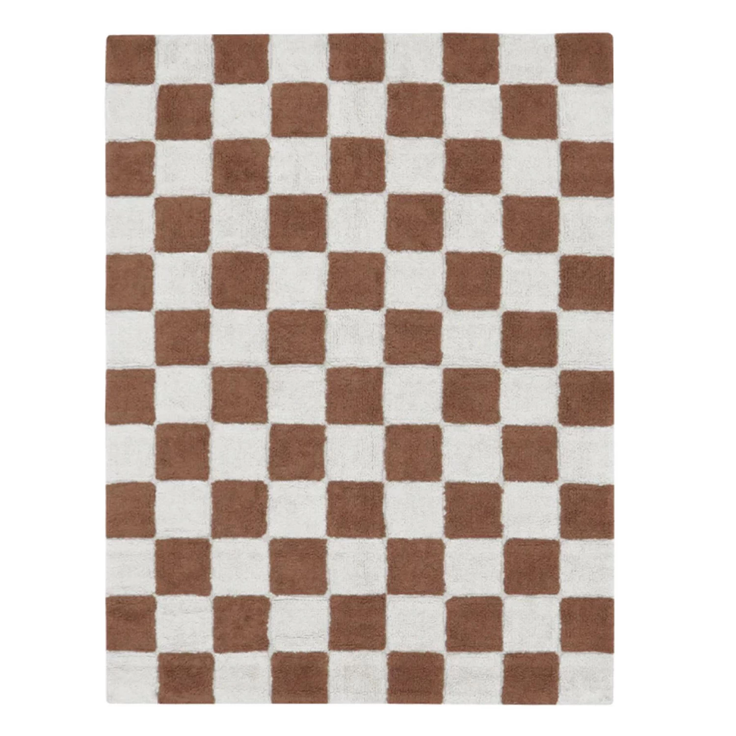 For the love of tiles! This design depicts the traditional checkerboard kitchen tile pattern on a rug. Its contrasting squares in dark gray and natural add a bold statement to any room decor. Kitchen tiles never felt so soft to tread!
