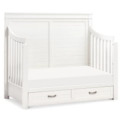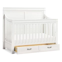Reminiscent of the idyllic countryside, the Wesley Farmhouse 4-in-1 Convertible Crib takes inspiration from classic, farmhouse style. With the addition of an under drawer, the Wesley Crib provides ample space for your baby’s necessities, while its rustic shiplap design combines with graceful curves to create a cozy place for your baby to sleep.
