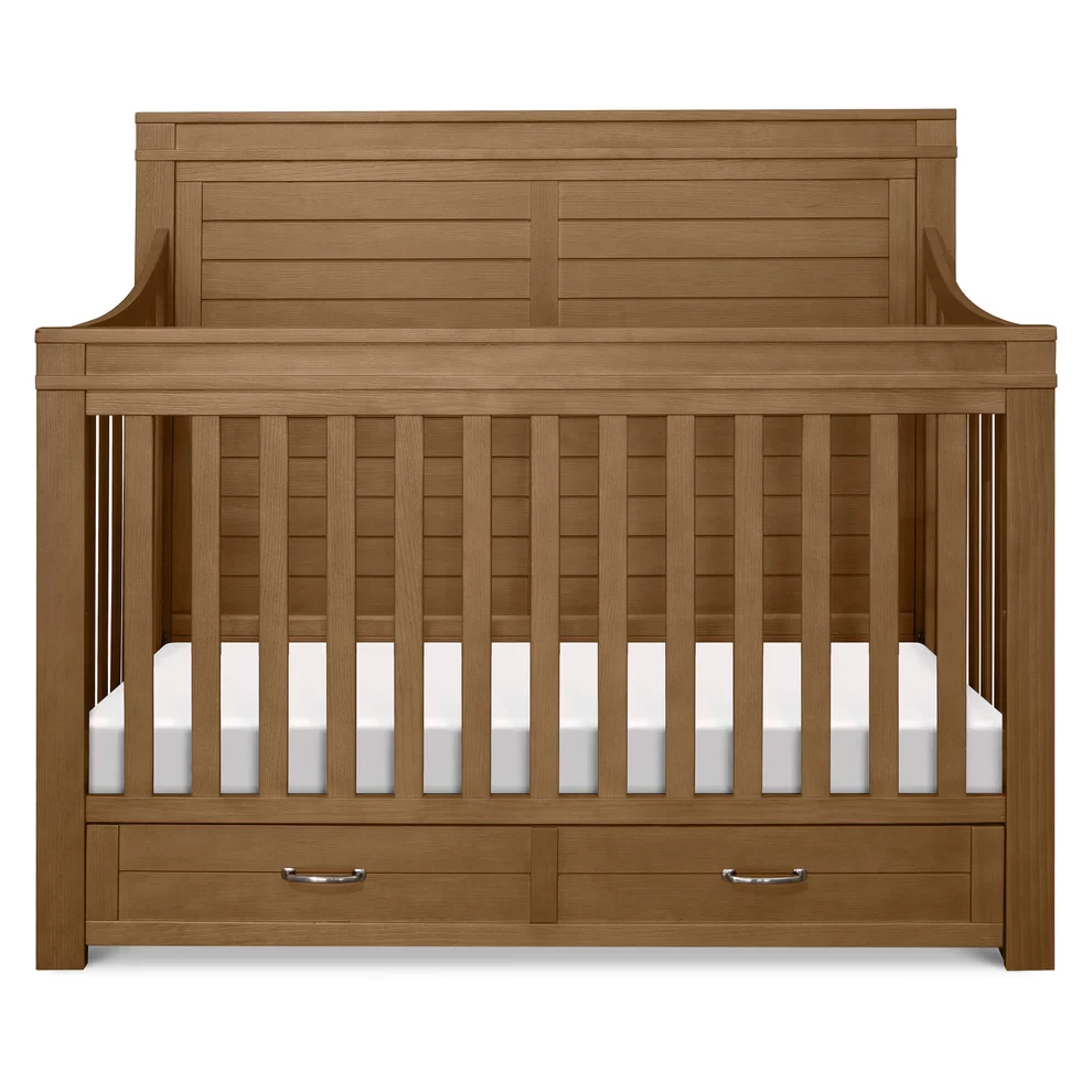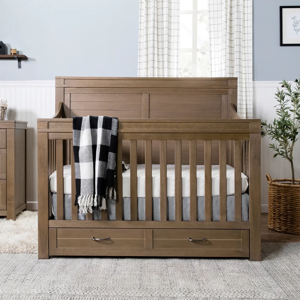 Reminiscent of the idyllic countryside, the Wesley Farmhouse 4-in-1 Convertible Crib takes inspiration from classic, farmhouse style. With the addition of an under drawer, the Wesley Crib provides ample space for your baby’s necessities, while its rustic shiplap design combines with graceful curves to create a cozy place for your baby to sleep.